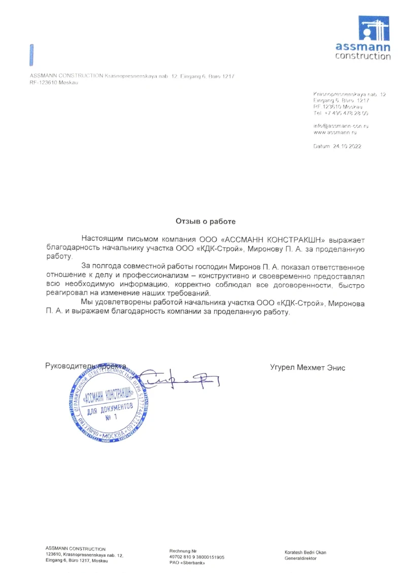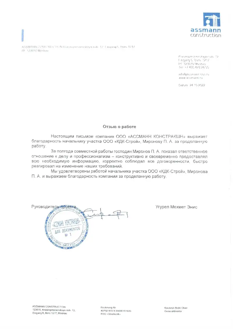✔ За объектом закрепляется ответственный ИТР и ведёт объект от начала до конца